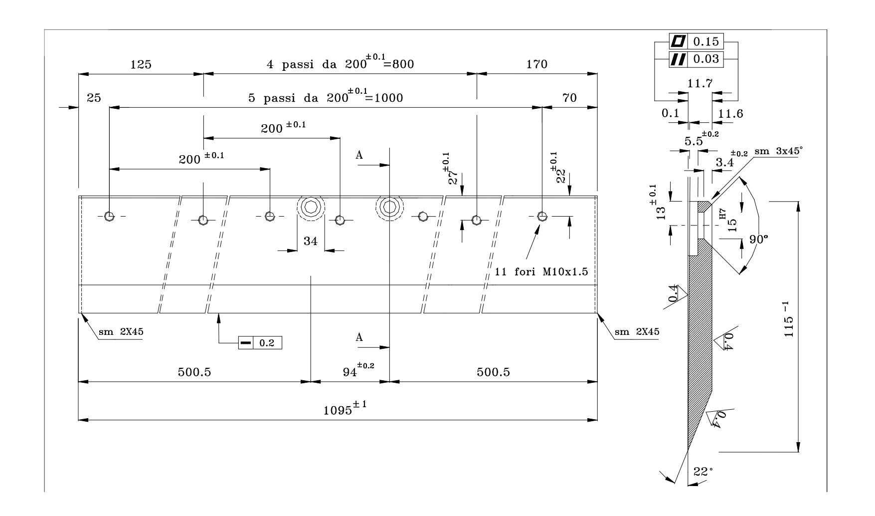 Acciaio al carbonio-cromo-wolframio, con elementi di lega caratterizzati da specifiche proprietà di tenacia, omogeneità, resistenza all'usura ed agli urti.